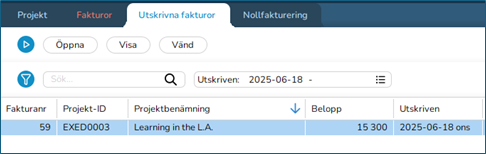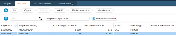 - Gå till Projekt | Fakturering, fliken Fakturor. Där visas påbörjade men inte utskrivna fakturor.