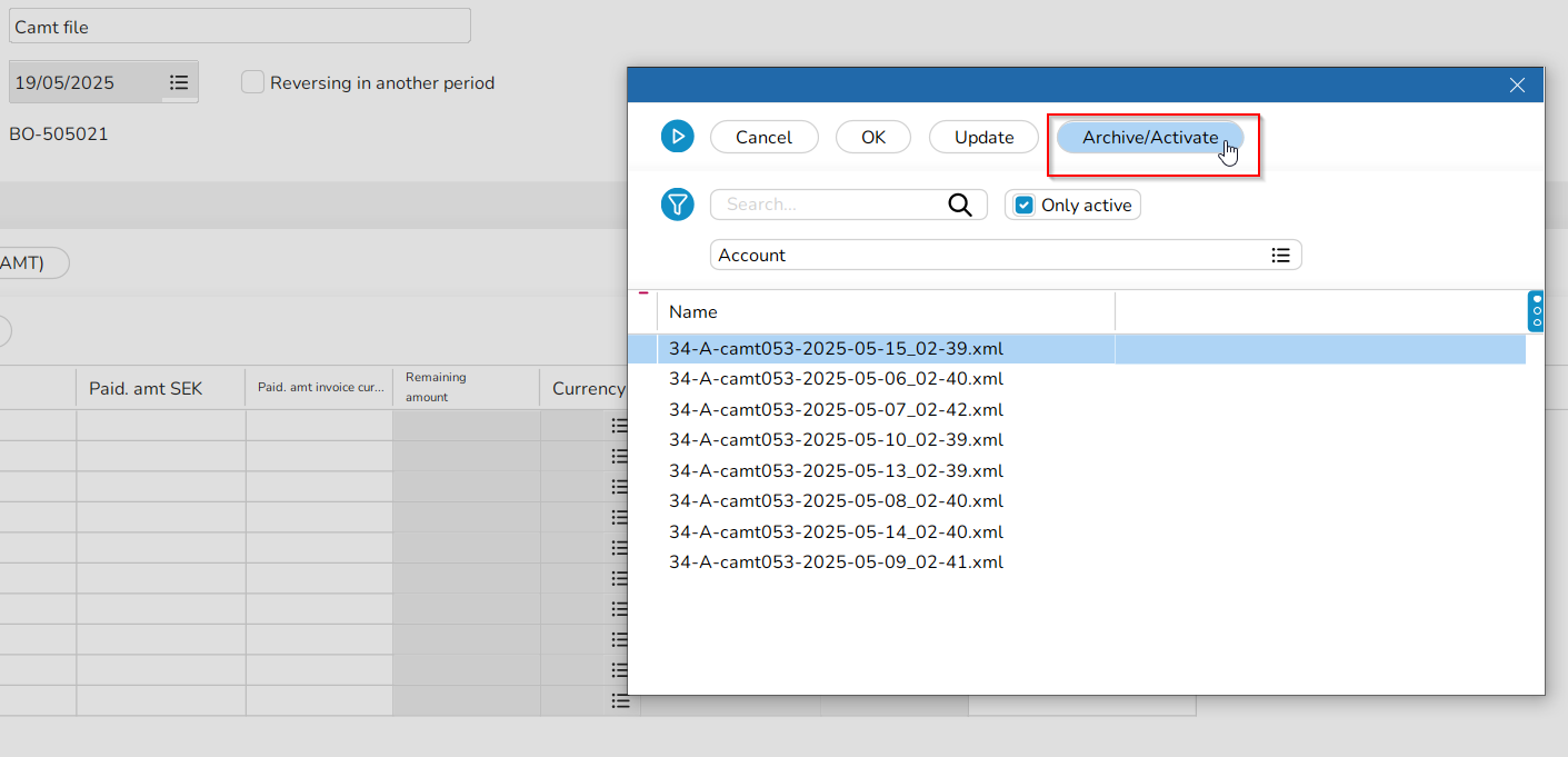 It is now also possible to archive a used to camt-file to free up space in the list of camt-files.
