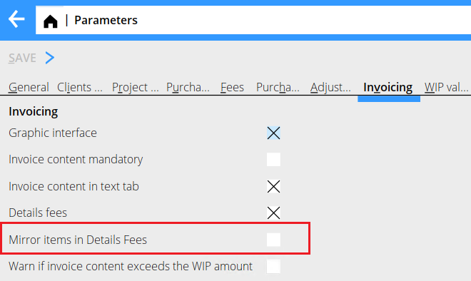 With Multiple Agency handling activated it's now possible to have "Details Fees" on mirror project invoices by setting the parameter: Projects/Parameter tab Invoicing "Mirror items in Detailes Fees"