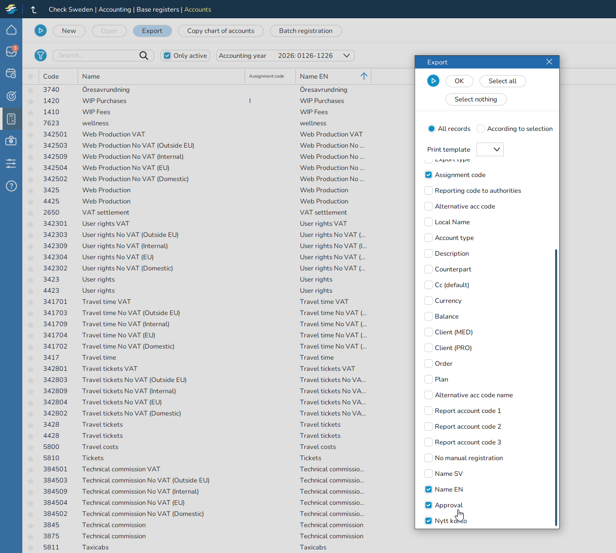 We have added Approval to the selection in Export of Accounts.