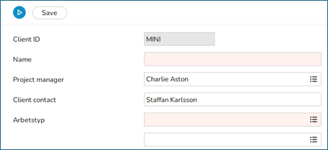 | Client manager | The system automatically suggests the person who is logged in as the client manager, but it is of course possible to change employee. |