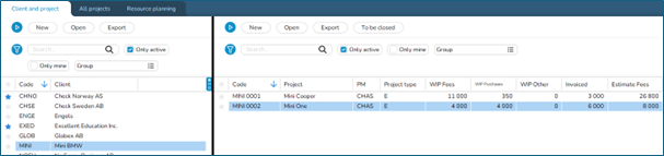 | Only active | On both client and project side you can choose to see only active clients/projects. |